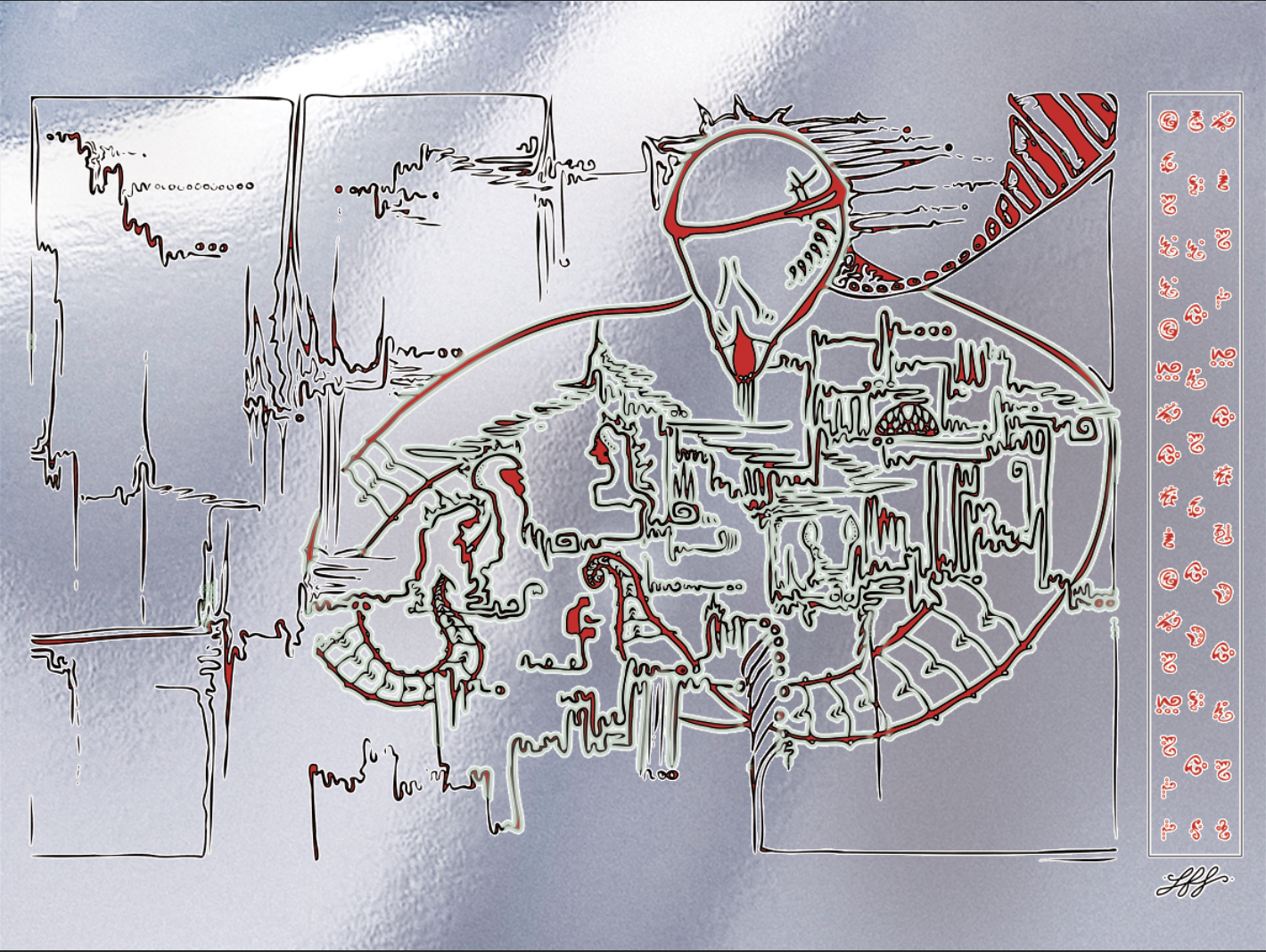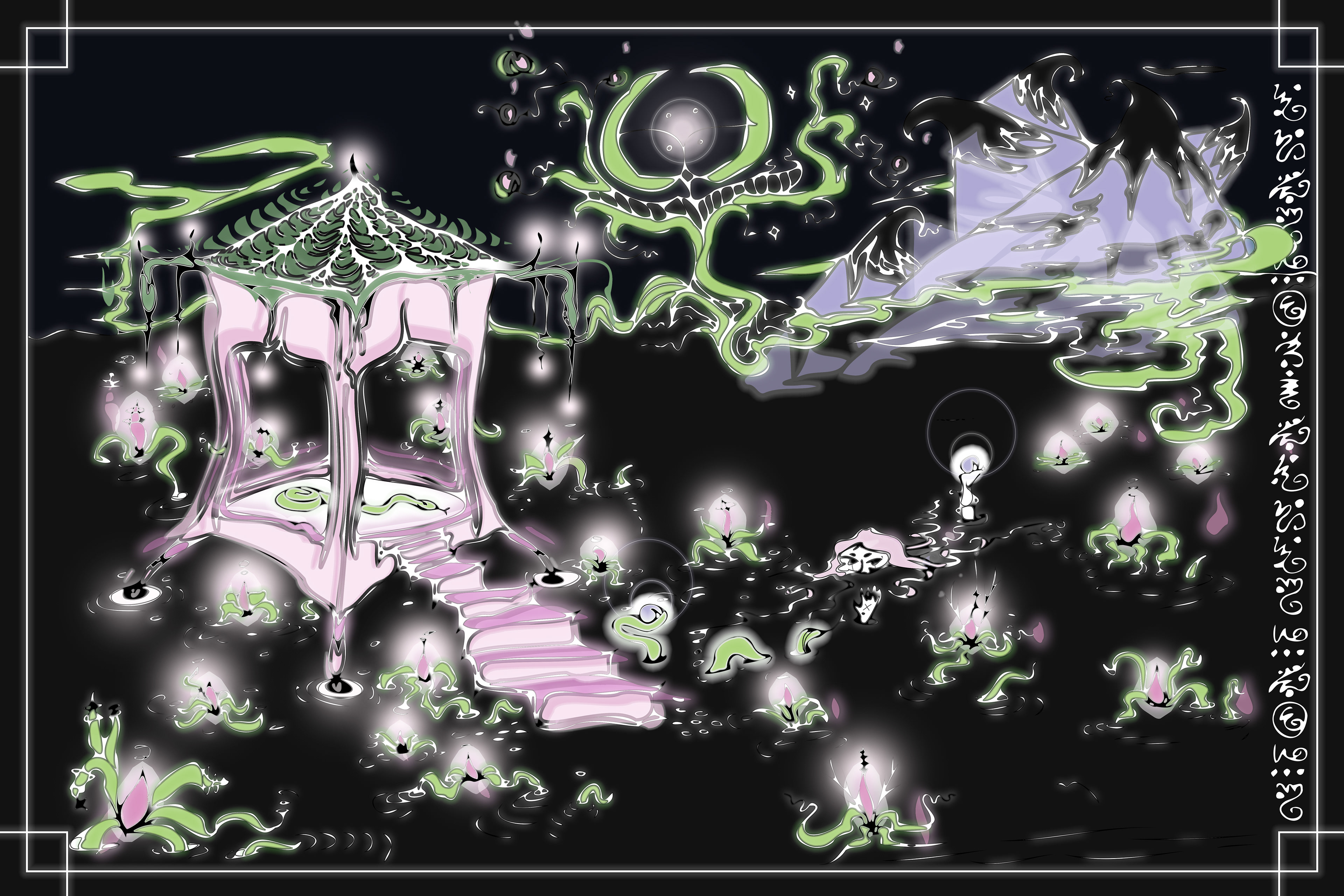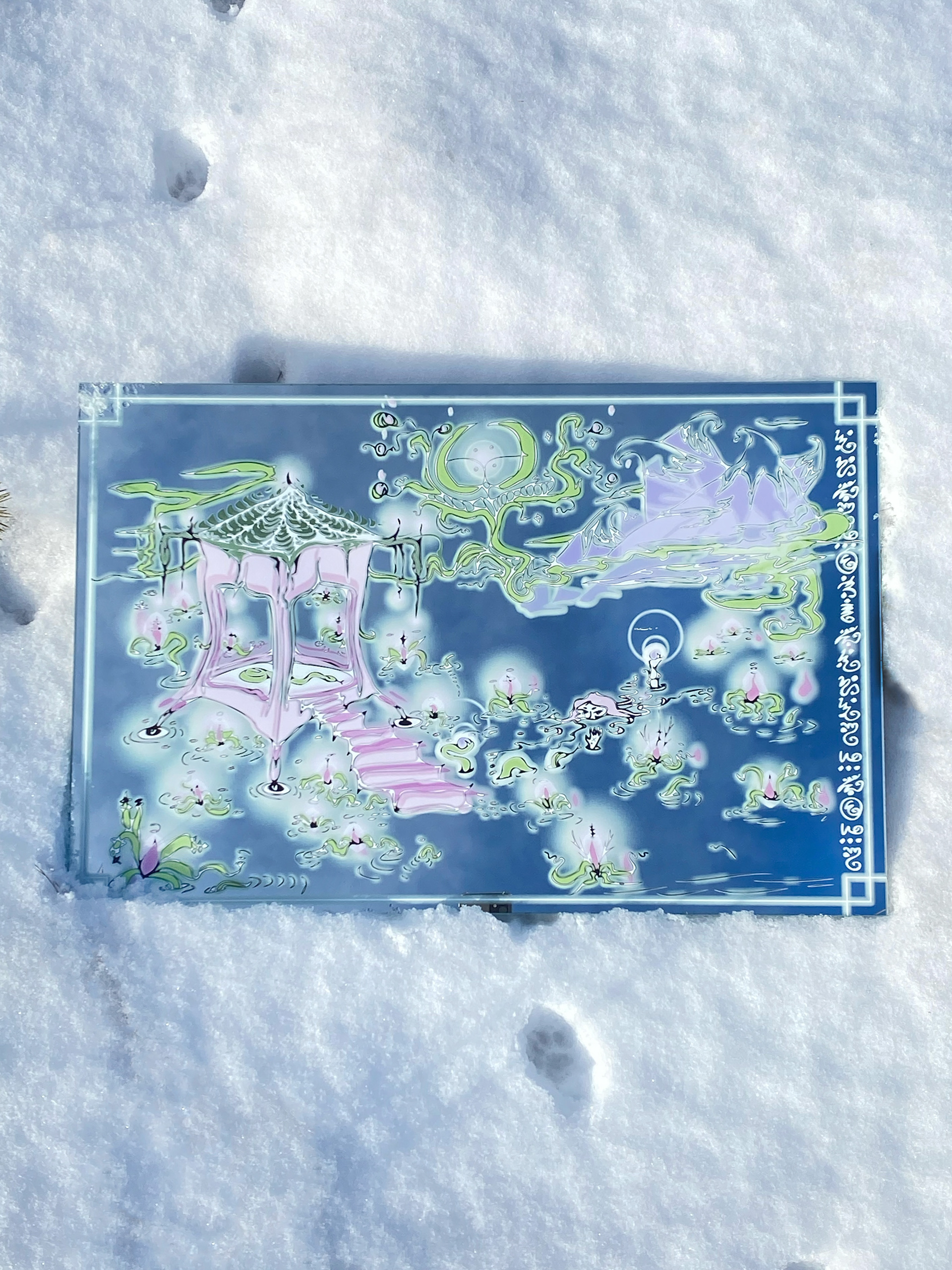 A recent collection of art and prints created with various methods: illustration, painting, sketching, UV printing on mirror, risoprint, and advanced editing.